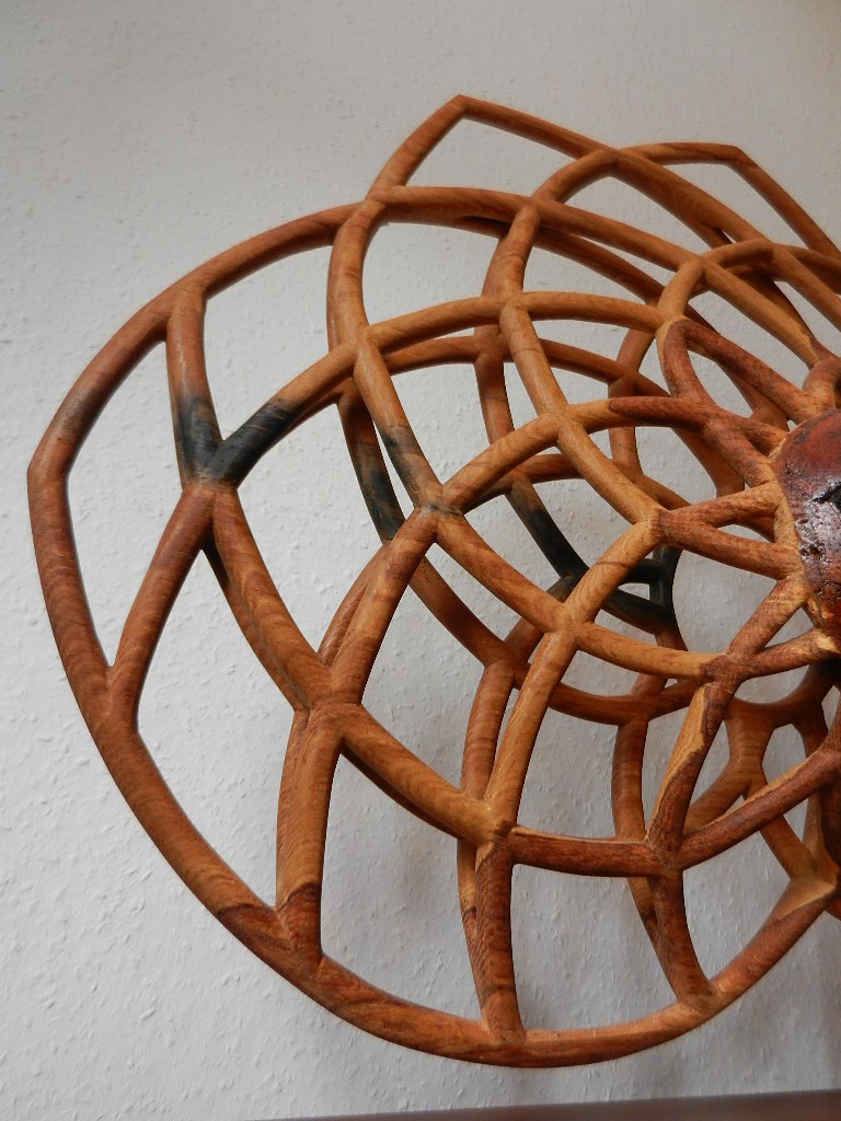 | Inverted butterfly Dieses Stück war Teil einer riesigen Eiche. In deren Stamm und Äste waren vor vielen Jahren 7 Bauklammern eingeschlagen worden, die vom Baum überwachsen und teilweise eingeschlossen wurden. Die noch vorhandene Borke beweist das. Das Stück misst 105x55cm. Das Schleifen allein zog sich über zwei Wochen hin. Wenn Sie ein Stück Holz mit großem, eingewachsenem Fremdkörper haben, lassen Sie es mich bitte wissen. Material: Eiche, EisenMaße: total 116x31x65 cm Preis: